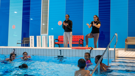 På badhuset i Angered plaskar en grupp glada barn omkring i bassängen. De kastar sig ut från höga hopptorn och leker avslappnat i vattnet. För bara några månader sen kunde inga av dem simma. Vissa var rädda för att ens gå ner i bassängen.