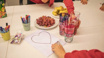 När övningen är avslutad är det dags att börja skapa kreativt; för den som vill. På det stora bordet i rummet finns bland annat papper, pennor, klistermärken och pärlor. Stora korgar med frukt och fika står uppdukat. Några av tjejerna sätter genast i gång att rita, medan andra hellre vill umgås. Sammanhållningen är stark och tjejerna vågar vara både sårbara och tramsiga med varandra. Moa berättar: