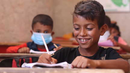 Vändningen kom när när våra lokala medarbetare fick höra talas om Anwars situation. På kort tid lyckades vi ordna en plats åt honom i flyktinglägrets skola. Där får Anwar nu den undervisning han behöver. Han trivs väldigt bra och när skoldagen är slut hjälper Abdullah honom med läxorna.