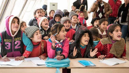 För att krig och katastrofer inte ska få förstöra barns skolgång och framtidsutsikter så sätter vi upp tillfälliga skolor där de behövs.